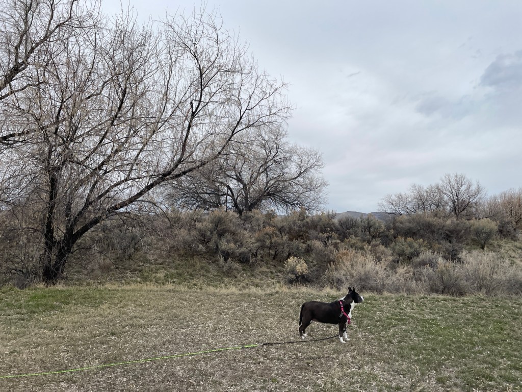 At Curlew Grasslands – Ziggy waiting for Kelly to return from her birding walk. We heard a Meadowlark and watched two Sandhill Cranes soar and call to each other.